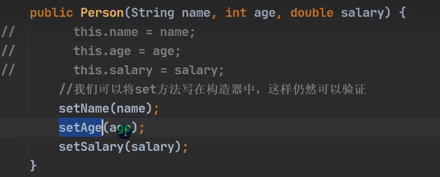 封装与构造器:可以在构造器内调用get,set,同样可以判断其合理性,如图