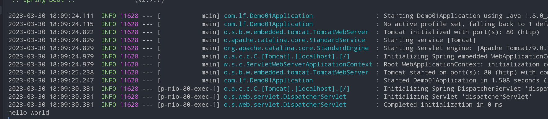 @RequestMapping():这里定义的是访问路径,如果要访问你的springboot,则需要在浏览器中输入”http://localhost/ + 你在RequestMapping()写的路径”
